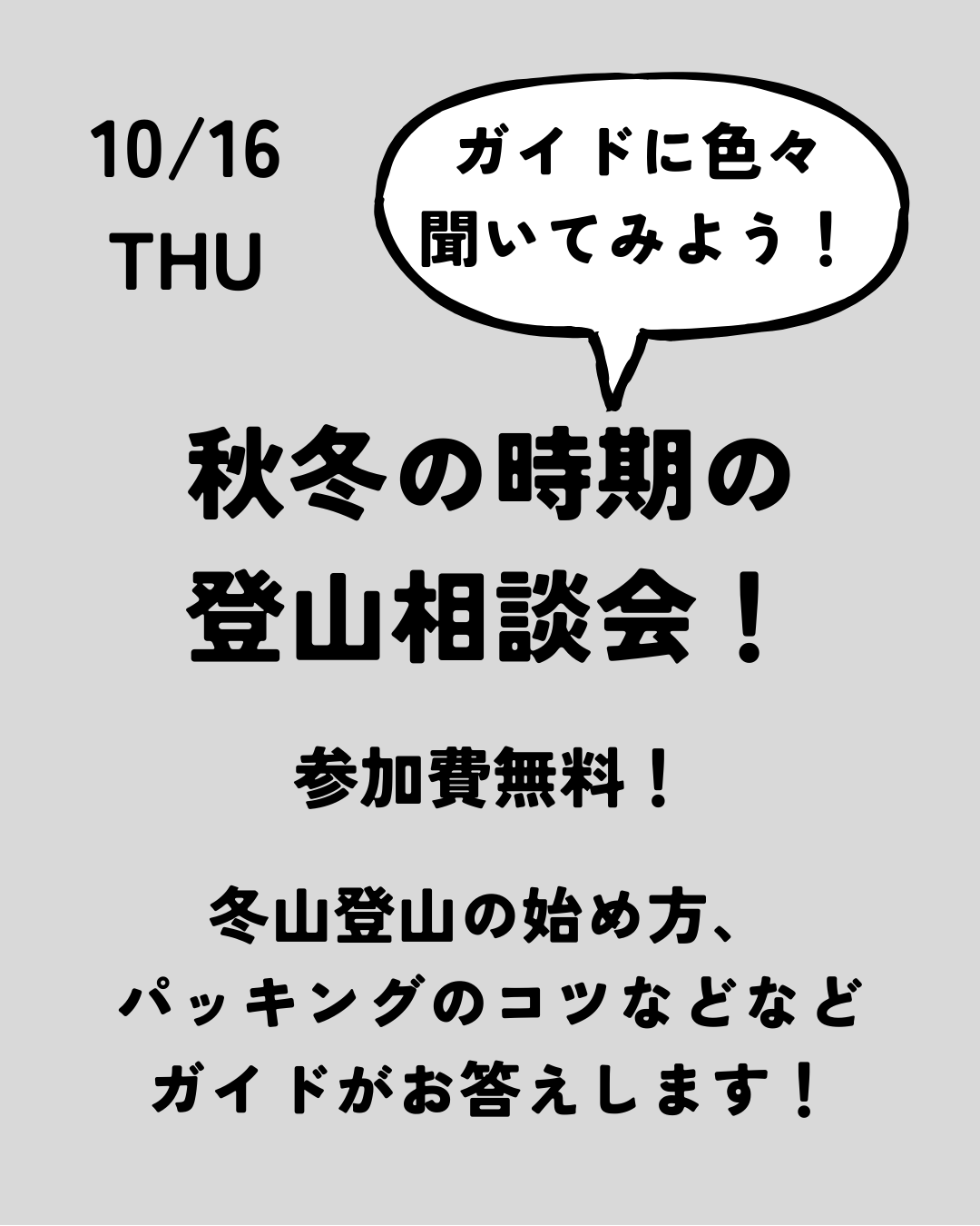 秋冬の時期の登山相談会!