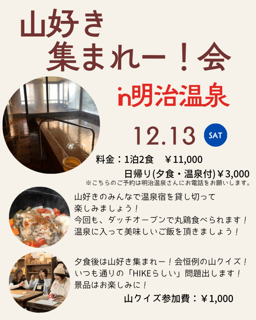是非山帰りに温泉に入ってイベントに参加しましょう!